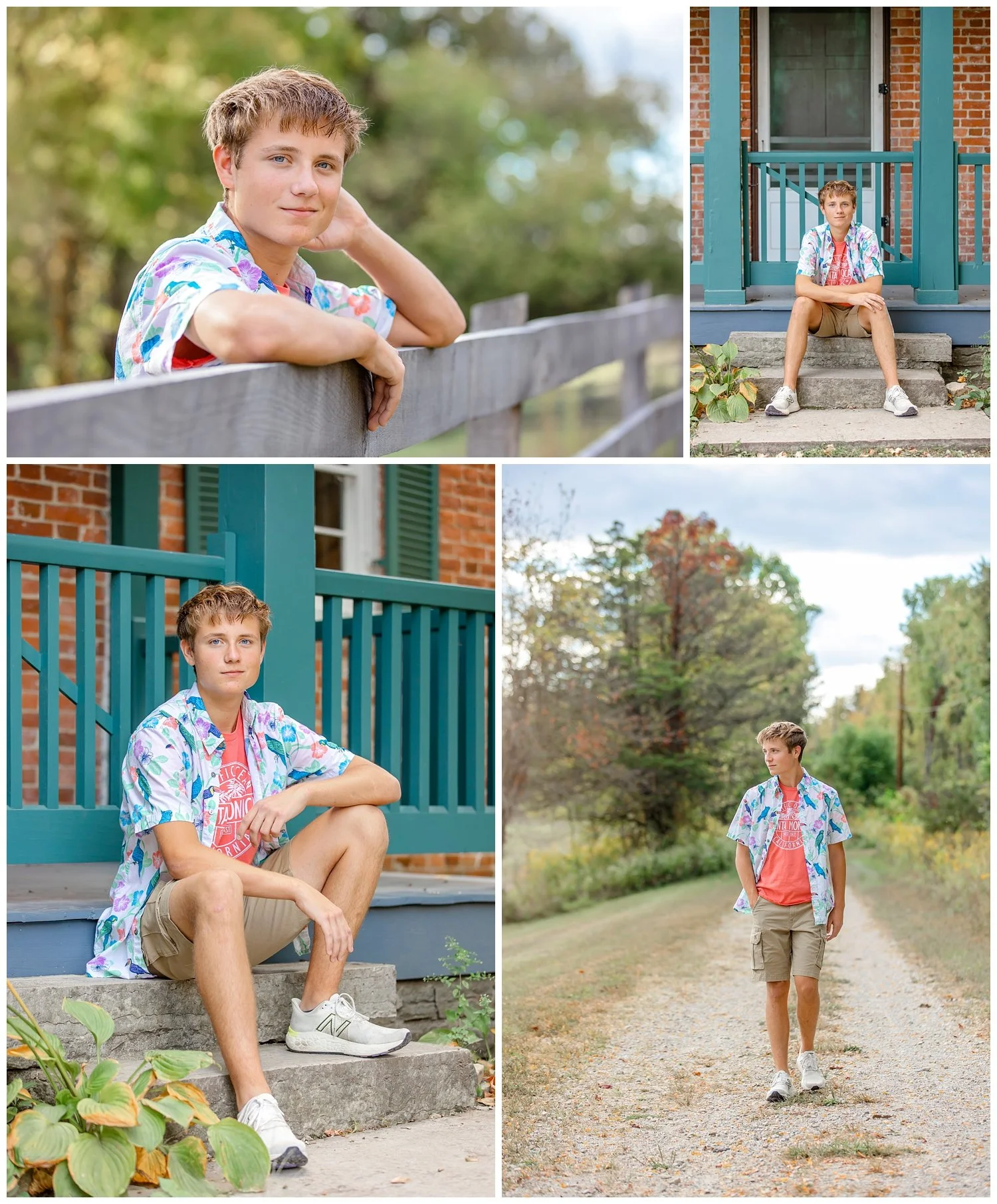 To say I was excited to see him walking towards me in his first outfit choice would be a vast understatement. I was SO HAPPY to see him embrace color and let his personality shine through for these senior pictures. Your outfit choices should always reflect who you are and by choosing such a fun and vibrant print button down, you can really see the confident, cool young man he is.